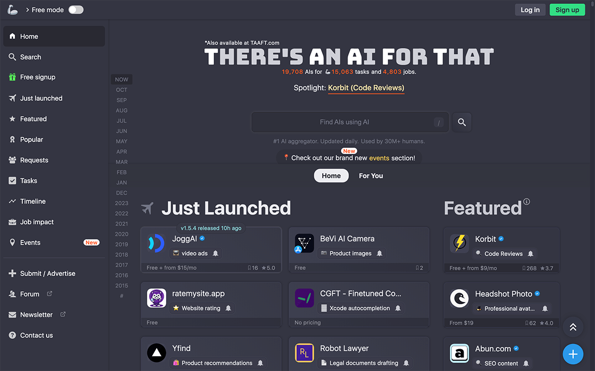 There’s An AI For That 网站涵盖各种主题,包括人工智能能力的时间表、就业影响指数(显示人工智能对 4,000 多个人类工作的影响),以及哪些人工智能工具最适合每项工作。