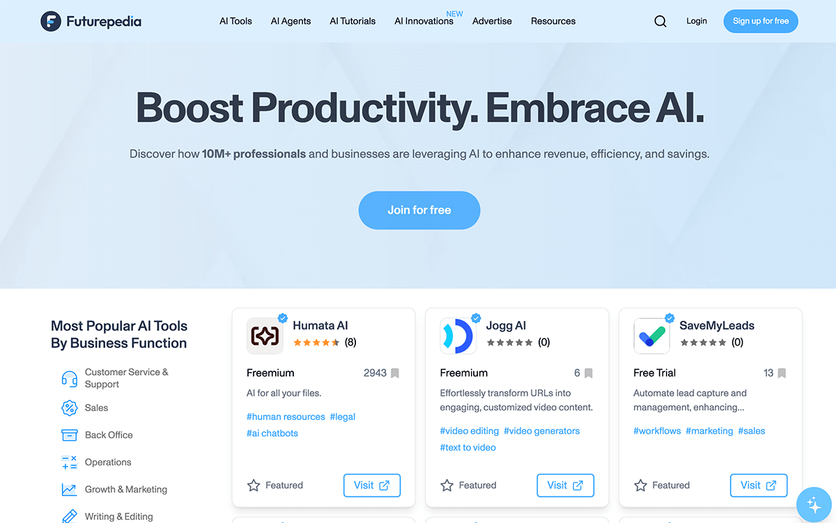 Futurepedia致力于让人工智能变得易于理解和实用,为不同的专业需求提供量身定制的资源,培育了一个超过20万专业人士分享知识和经验的社区。加入Futurepedia,共同塑造一个人工智能成为工作和创新不可或缺的未来。