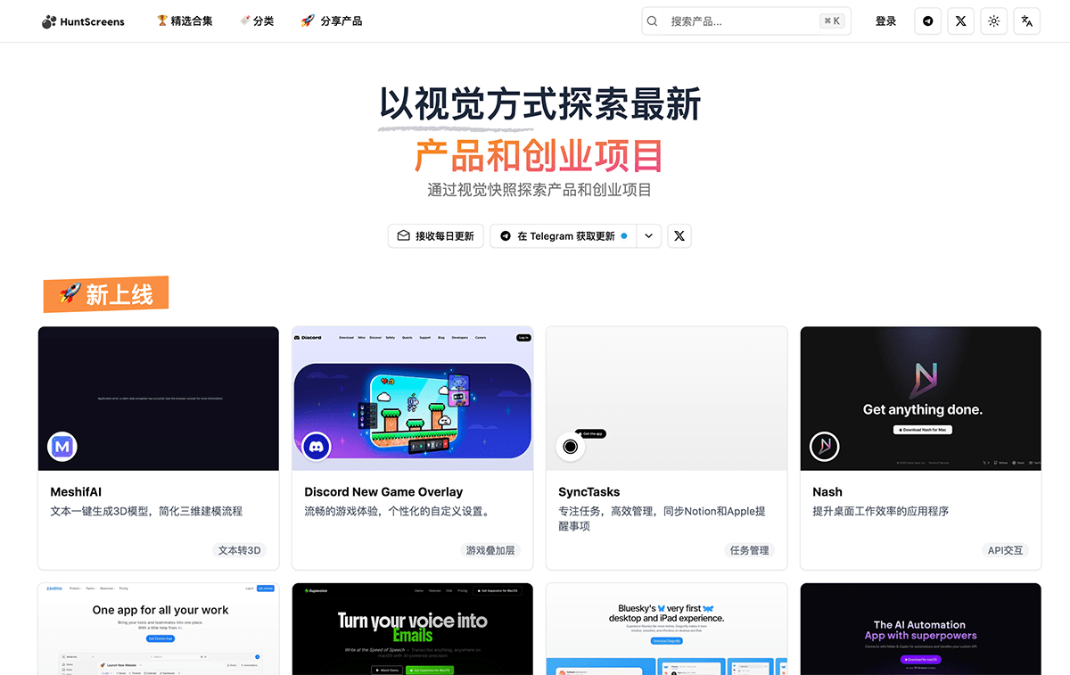 - 持续更新:HuntScreens会定期更新最新发布的产品,确保用户获得相关领域的最新信息和趋势。