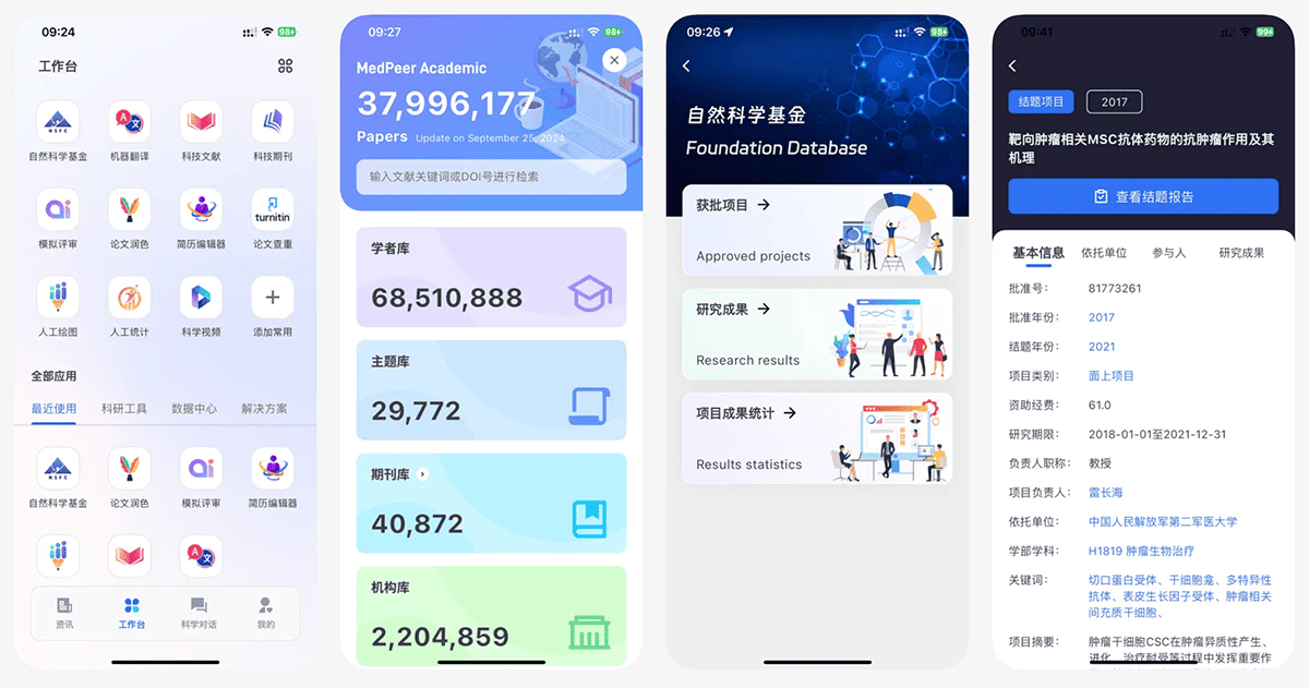 - 收录1986年以来近70万获批项目以及540万+研究成果数据,涵盖八大学部内容。