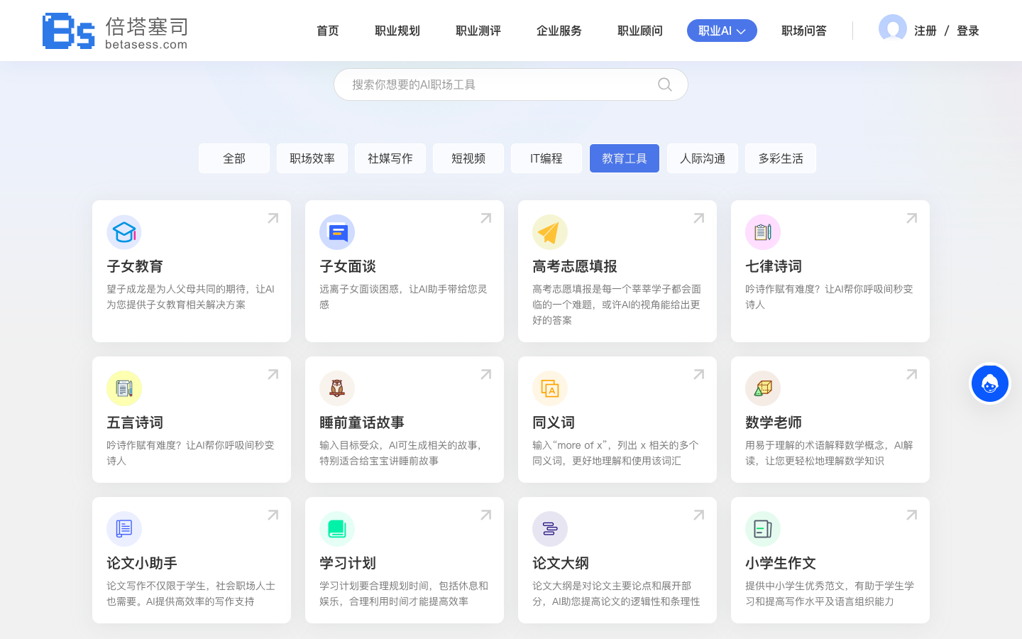 简介:一个专注于职业测评与规划的平台,利用AI技术和大数据为用户提供专业的职业指导服务。