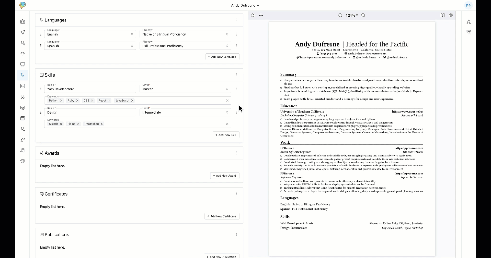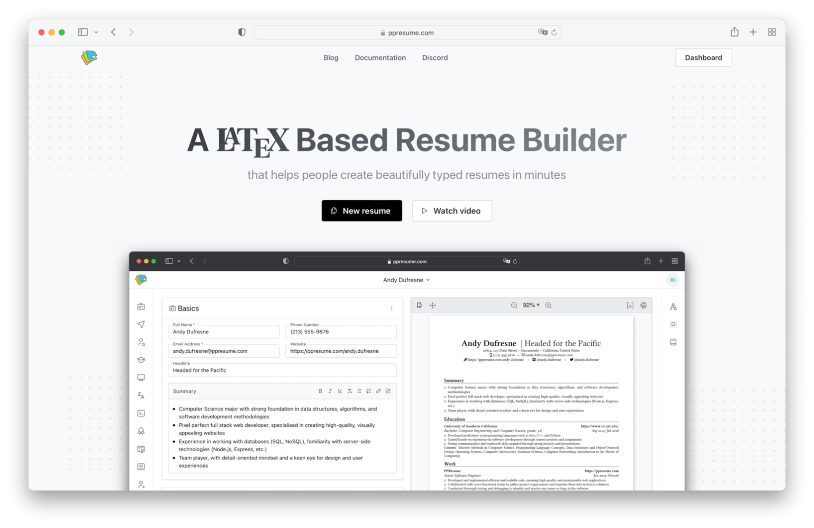 PPResume是一个基于 LaTeX 的简历生成器,目标是帮助人们在几分钟内创建一份精美的简历,并提供极高质量的排版和 PDF 输出。