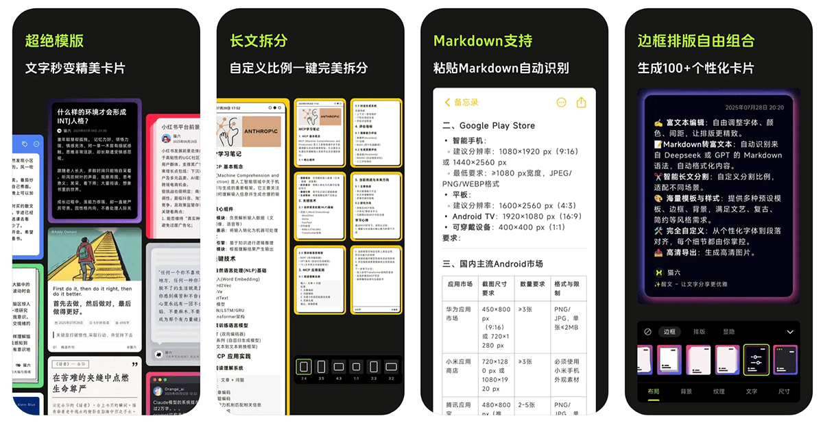 - 智能长文分割:同时支持自动分页和主动分页,适配不同场景(如朋友圈、小红书等)。