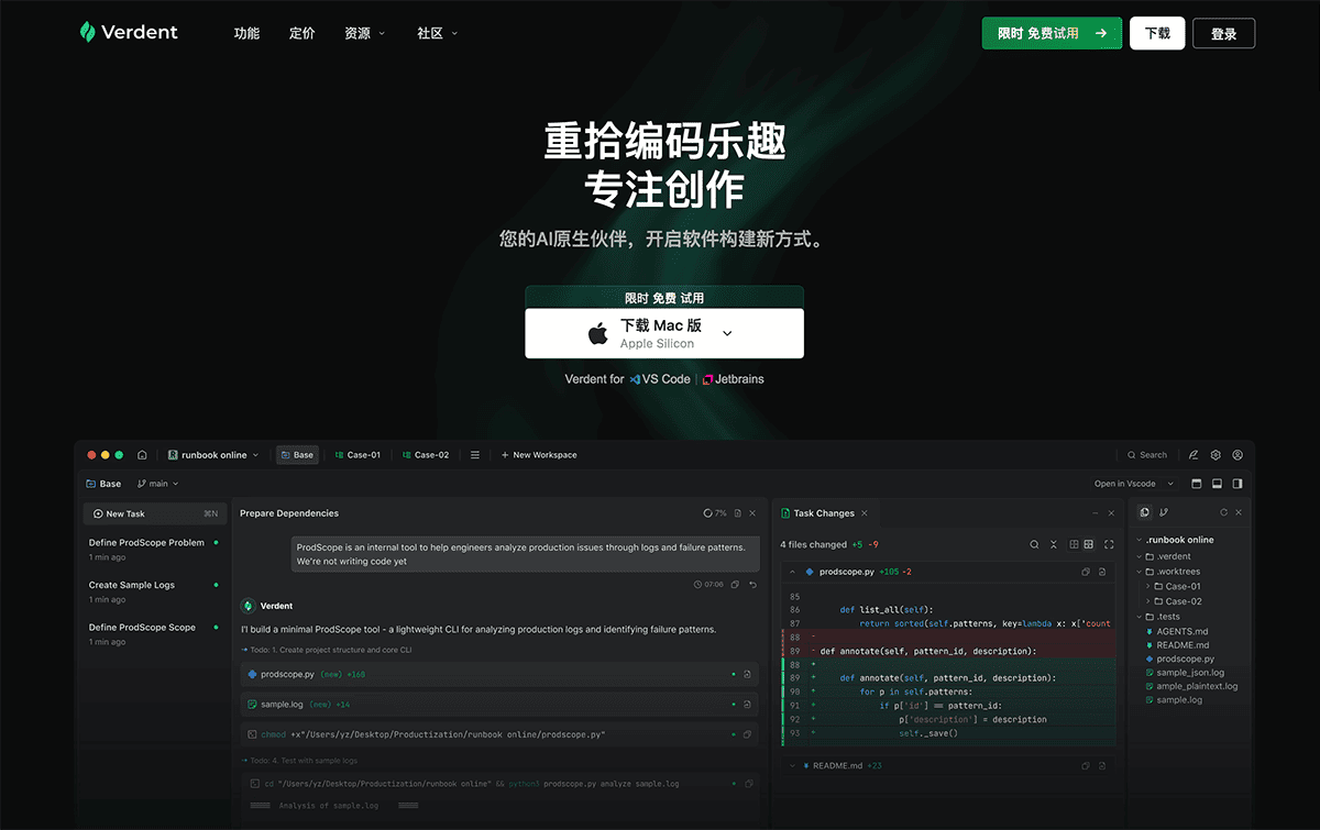 - Verdent下载地址:https://www.verdent.ai/zh-CN/download
