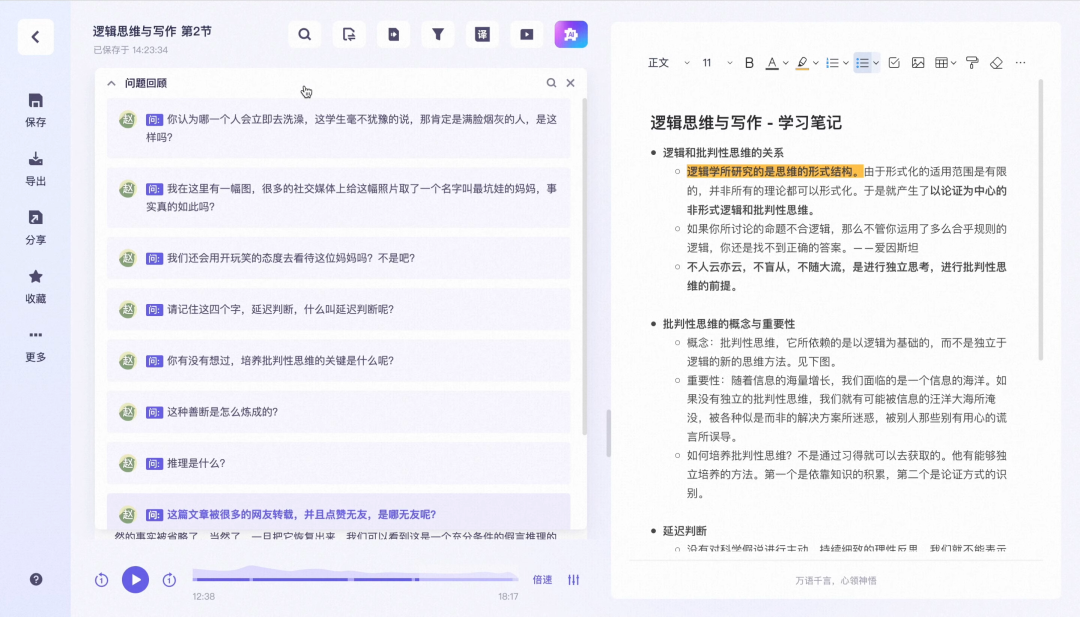 • AI 智能分析和总结绘画内容,智能提取关键信息、问答观点、章节脉络、待办事项;