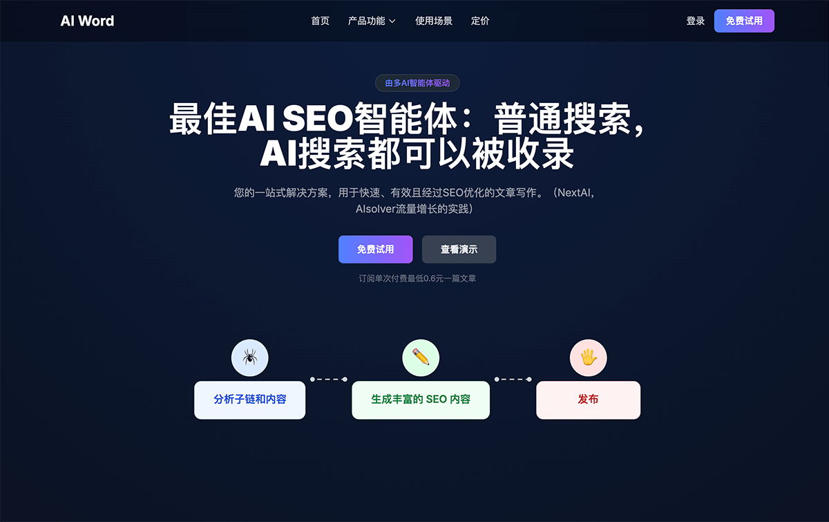 - 解决痛点:撰写具备权威性的专业内容门槛高,AI 助力用户快速产出高质量、高可信度文章。