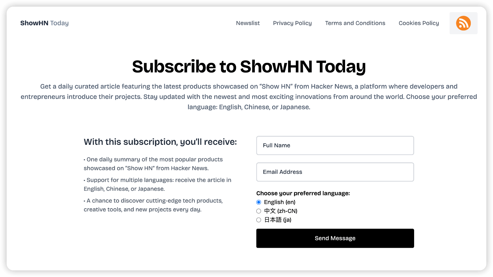 简介:每日更新展示 Hacker News 社区中最热门的开发者项目,方便用户快速了解技术创新趋势。Show Hack News Today 是一个专注于整理每日 HN Show 板块产品的在线平台。通过该网站,用户可以轻松了解全球技术和产品发展的最新趋势。Show Hack News Today 汇总了前一天 Hacker News Show板块中的所有产品,无论是新兴项目还是创新技术,只需登录网站便可轻松获得。为了确保不遗漏任何重要信息,用户还可以通过订阅我们的 RSS 和 Newslist 服务来及时接收更新动态,获取来自全球开发者的最新项目和创新。